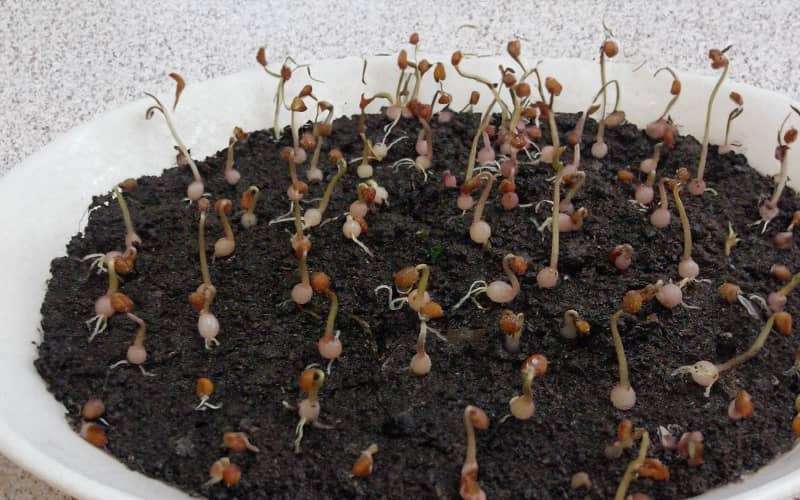 - Умови пророщування. Після посіву контейнери накривають плівкою або склом для створення парникового ефекту. Для успішного пророщування потрібна температура близько +15+18°C. Освітлення повинно бути помірним, без прямого сонячного світла.
