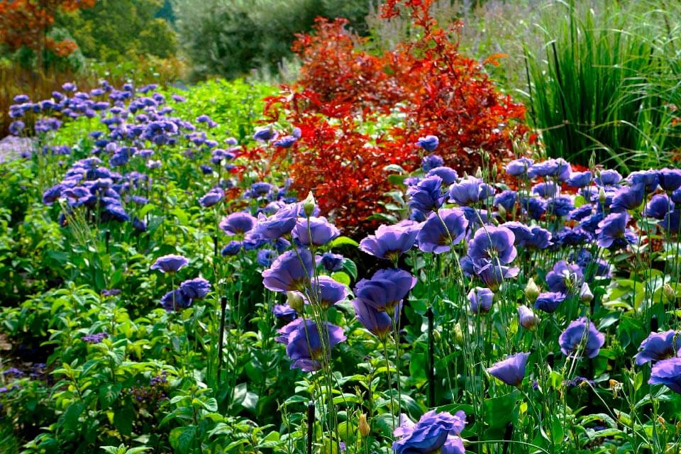Еустома «Розі Лавендер Блу F1» дуже гарно квітне. Ніжні бутони демонструють свою красу з червня до серпня.