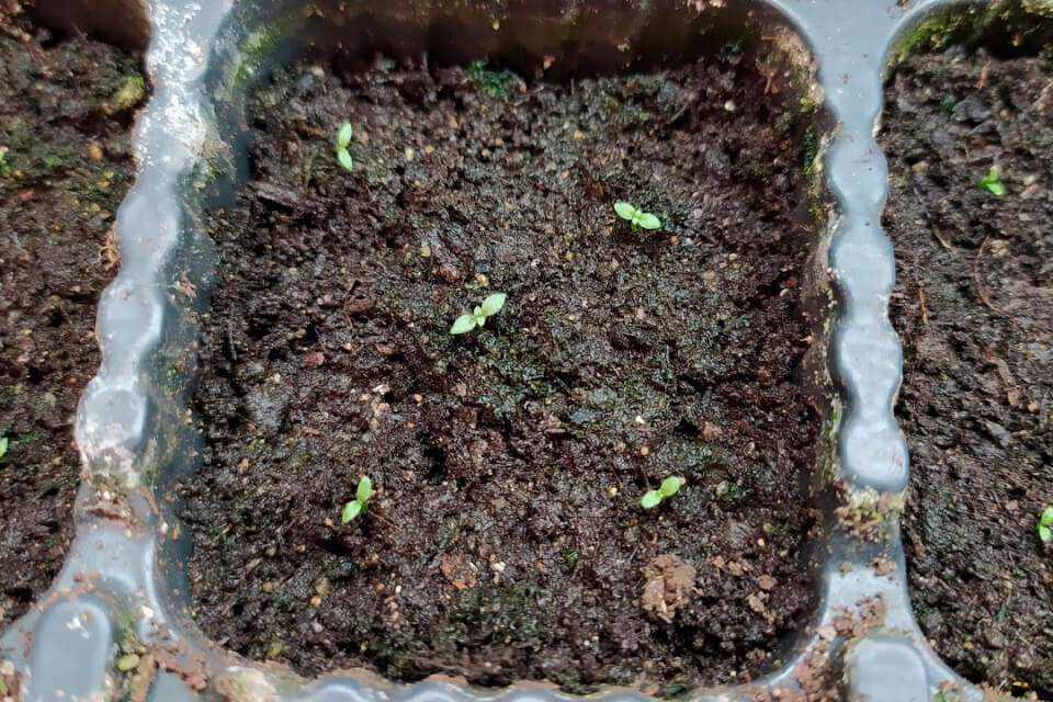 Присипати насіння землею не потрібно. Достатньо обережно притиснути його до землі. Посів необхідно зволожити та накрити плівкою або склом. Земля має завжди залишатися зволоженою. Також необхідно провітрювати посів.