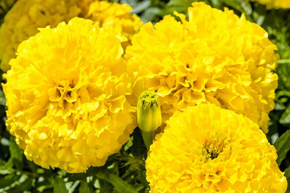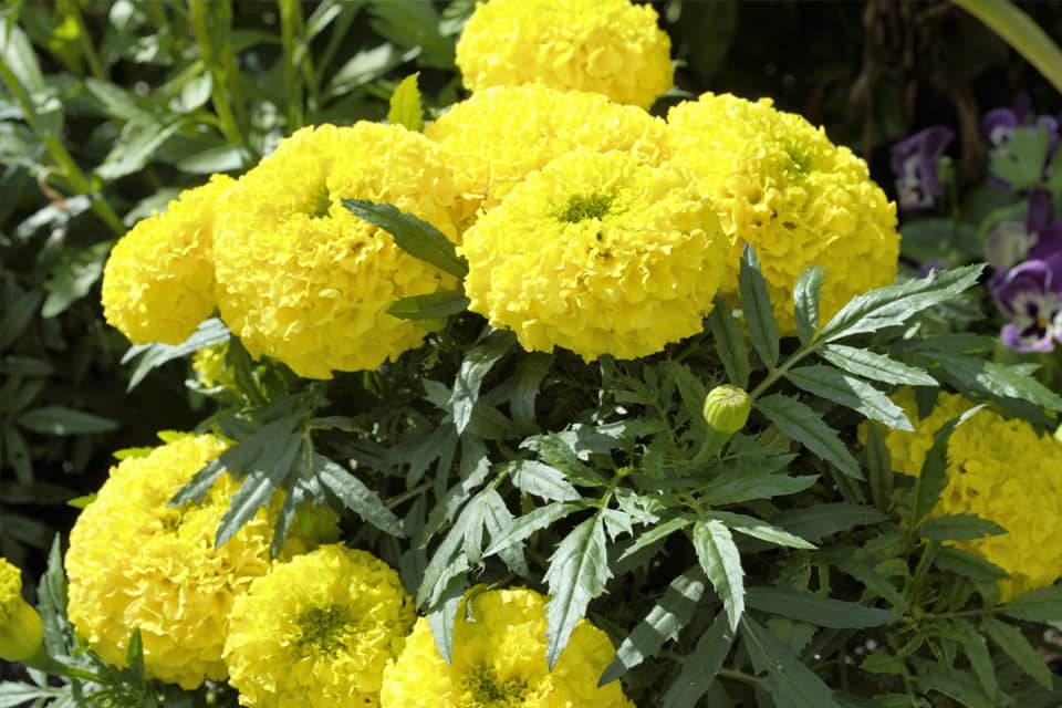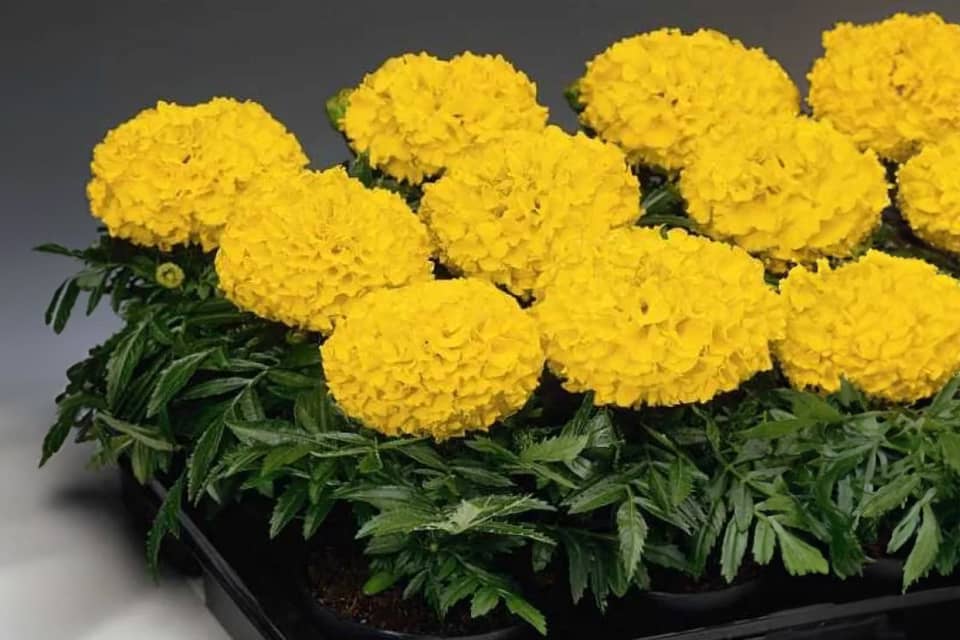 Африканські чорнобривці «Купідон» вирізняються яскравими, золотисто-жовтими квітами.