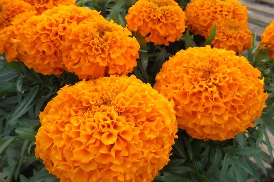 Африканські чорнобривці «Мандарин» тішать яскравим, пишним цвітінням. Великі бутони прикрашатимуть ділянку з червня до жовтня.