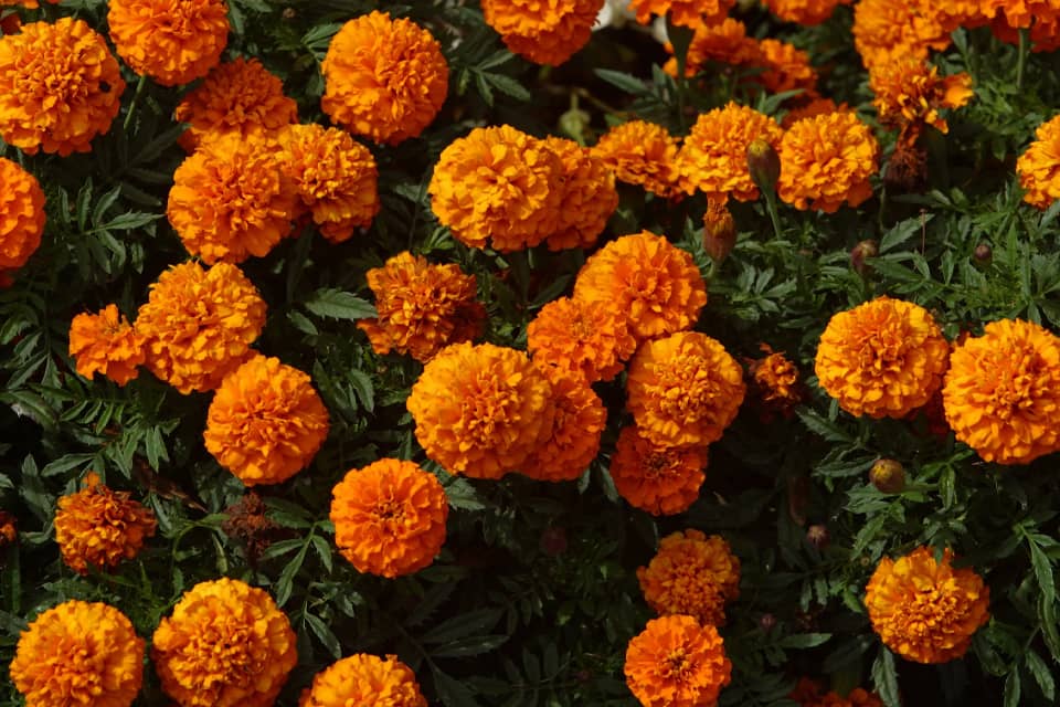 Однорічні чорнобривці «Мандарин» цвітуть безперервно. Яскраве помаранчево-жовте забарвлення прикрашатиме ділянку з червня до жовтня.