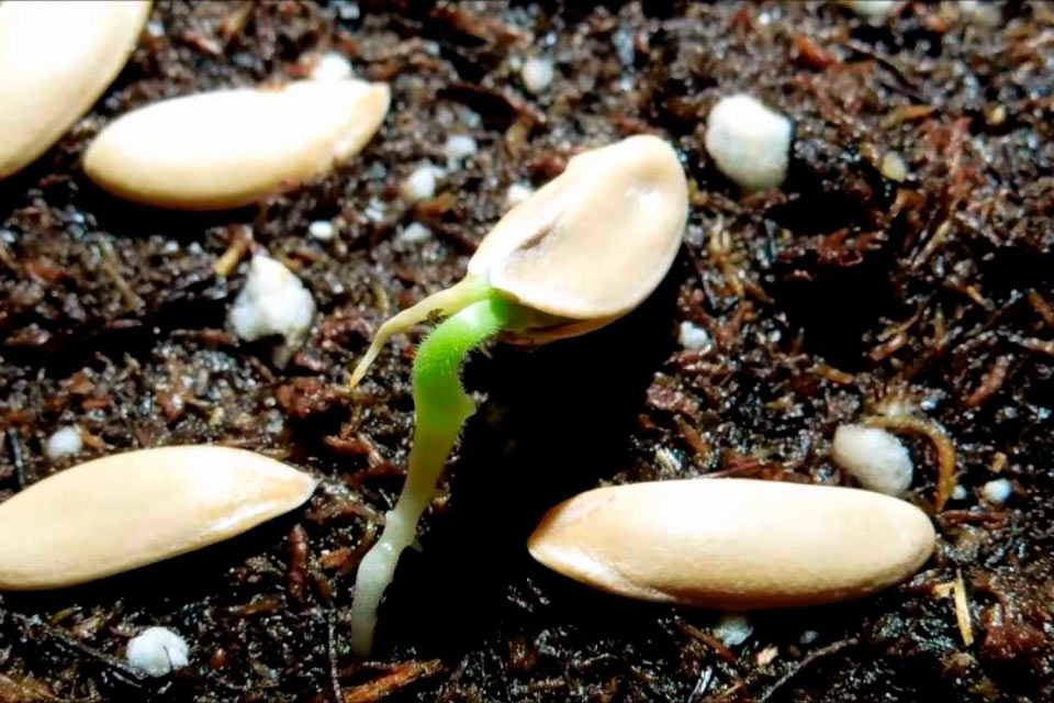 В квітні розпочинають посівні роботи. Насіння закладають на глибину приблизно 5 см, по 2-3 насінин у кожний стаканчик. Коли з’являться сходи потрібно підтримувати оптимальну температуру – не нижче +18°С вдень, +15°С вночі.
