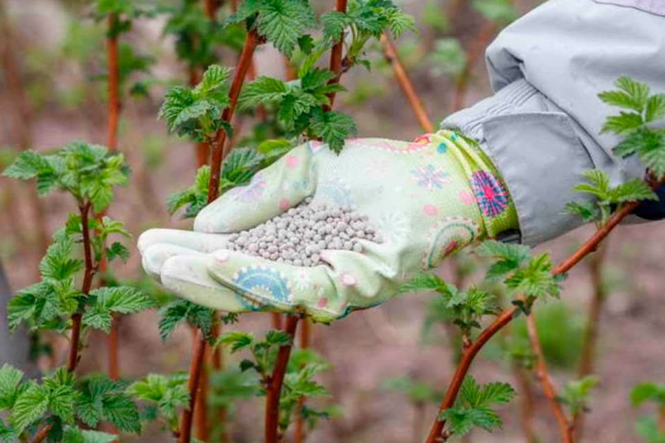 Для нормального развития малины «Зюгана» нужно внести несколько питательных составов. Весной, как только сошёл снег – время для первой подкормки, которая включает в себя мочевину. Летом чередуются минеральные и органические составы – суперфосфат и перепревший навоз.
