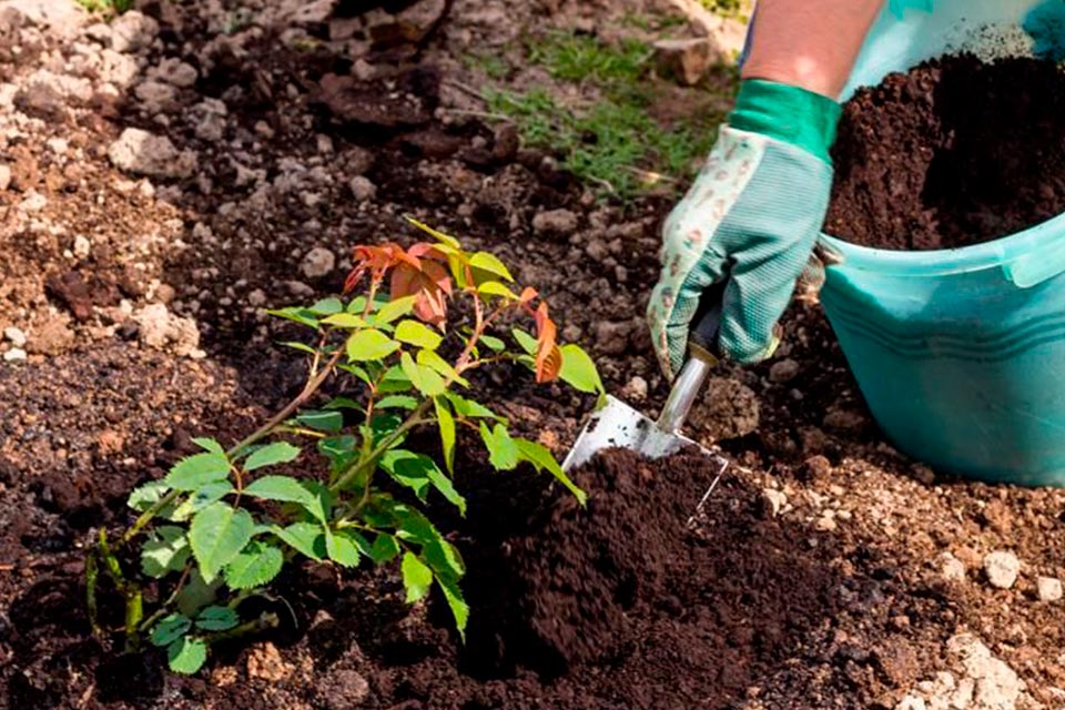 Молодое растение перед посадкой необходимо окунуть в воду на несколько часов или в специальный раствор, стимулирующий рост. И после этого можно высаживать. Саженец укладывать в лунку нужно с особой осторожностью, чтоб не повредить корень. Место прививки должно уходить вглубь на 3-4 см. После этого следует засыпать яму землёй. Сразу после высадки растению требуется хороший полив.