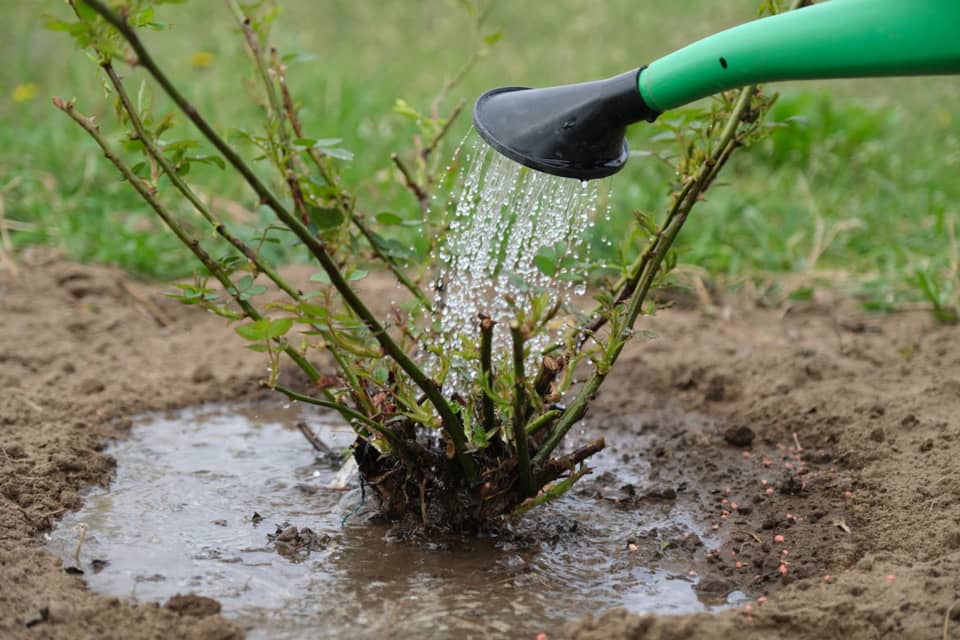Перед висаджуванням саджанця важливо занурити його у воду на 4-6 годин для належного насичення кореневої системи вологою. Під час посадки тримайте молоду рослину вертикально, оберігаючи коріння від пошкоджень. Обережно розмістіть троянду в посадковій ямі, присипте землею, обережно утрамбуйте та гарно полийте водою.