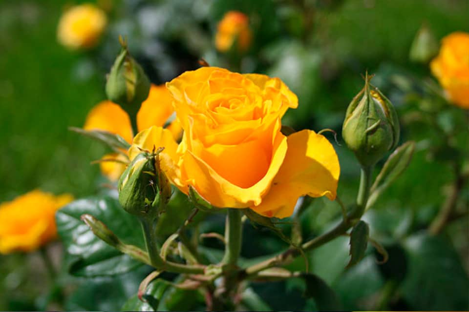Насичений жовтий колір троянди «Вернада» прикрашатиме садову ділянку протягом тривалого часу. Цвітіння починається у червні і триває до жовтня.