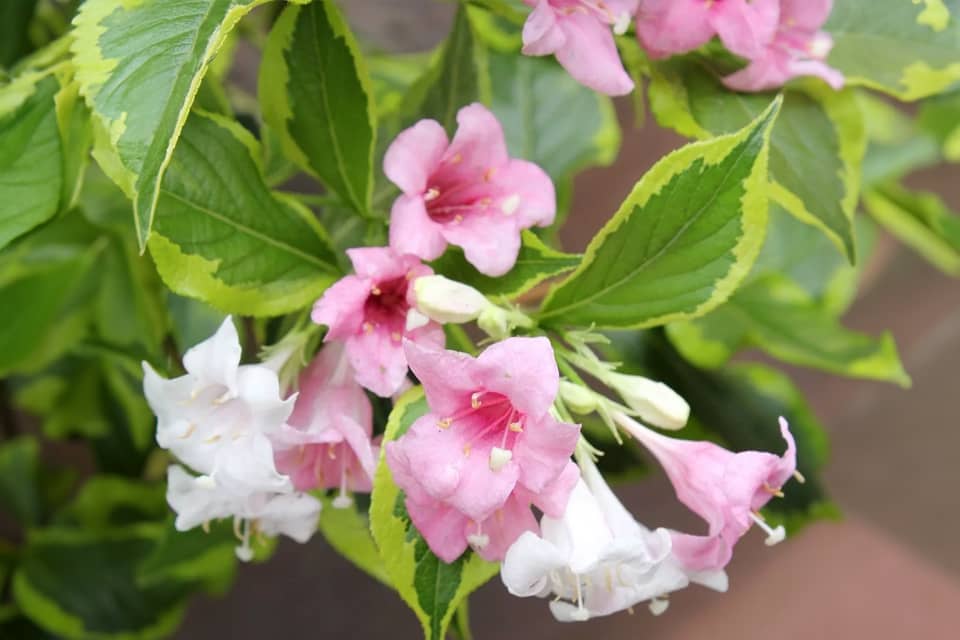 Вейгела «Варієгата» починає квітнути під кінець травня. Ніжно рожеві квіти прикрашають ділянку протягом місяця. Друга хвиля цвітіння починається в кінці літа.